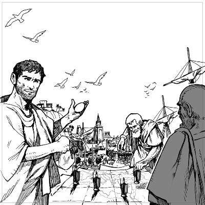 Le dessin au trait (style BD) de Vincent Dutrait pour la boite d’Augustus