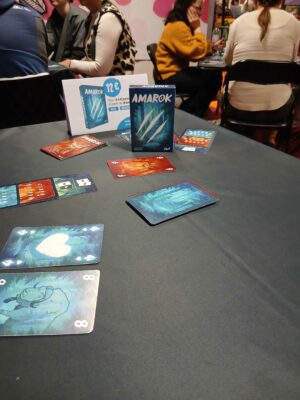 Cyrus nous emmène dans Amarok, un jeu de déduction et de bluff où nous posons 2 cartes devant nous, cartes issues de la pioche, la rivière, nos mains ou celle des autres !