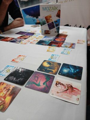 Elodie nous parle de Mozaïk un jeu de magnifiques cartes où l’on scorera sur sur des détails des dessins de nos lignes et colonnes.