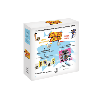 Ce mois, dans Autour du Jeu, Benofx et Flavien vous parlent de Super Cats un jeu créé par la Team Kaedama (Antoine Bauza, Corentin Lebrat, Ludovic Maublanc et Théo Rivière), accompagnée par Nicolas Oury. C’est un jeu illustré par Xavier Gueniffey Durin (Naïade) et édité par GRRRE Games en 2019. On y incarne une équipe de chats aux accoutrements colorés et aux techniques de combat chorégraphiés, joueurs et joueuses s’affrontant dans une espèce de chifoumi ou « Odds and Evens » revisité. Quand une personne a gagné la première phase, ses adversaires incarnent alors un super-méchant, RoboDog, et l’affrontement reprend de manière asymétrique en « un·e contre toutes et tous », toujours en jouant uniquement avec ses doigts.