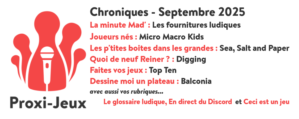 Voilà la rentrée est passée, les vacances semblent bien loin ! Mais septembre c'est aussi et surtout le retour des Chroniques de Proxi-Jeux, ! Qui accompagnera Mad' lors de la saison 16 pour présenter la dernière émission de chaque mois ? Lire la suite