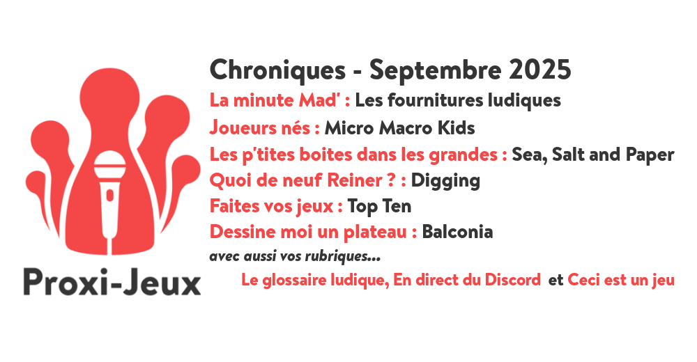 Voilà la rentrée est passée, les vacances semblent bien loin ! Mais septembre c'est aussi et surtout le retour des Chroniques de Proxi-Jeux, ! Qui accompagnera Mad' lors de la saison 16 pour présenter la dernière émission de chaque mois ? Lire la suite