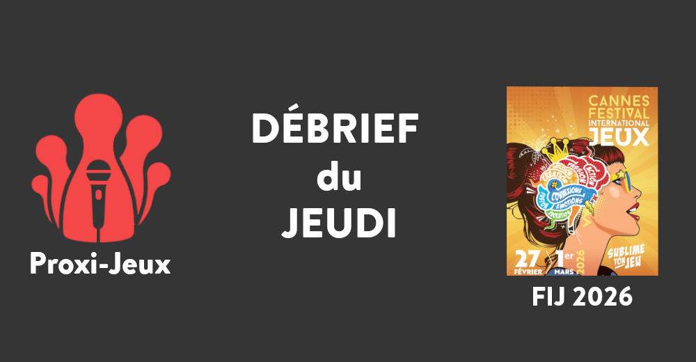 FIJ 2026, jeudi, écoutez le ressenti à chaud de la délégation de Proxi-Jeux présente au Festival International des Jeux de Cannes 2026. Lire la suite